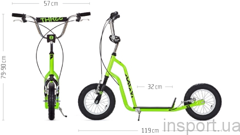 YEDOO Three 6+ двухколесный самокат для детей. Благодаря нескользящей платформе юный райдер будет чувствовать себя максимально уверенно во время своих заездов, надежный тормоз гарантирует безопасность, а удобные ручки дарят невероятное чувство комфорта. Яркие расцветки являются эффектным дополнением к этой превосходной модели.