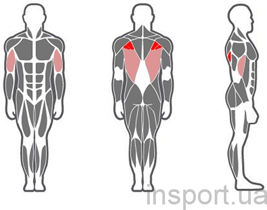 | Тренируемые мышцы | широчайшие мышцы и другие мышцы верхней части спины, вторичная нагрузка: бицепсы и мышцы плеча |