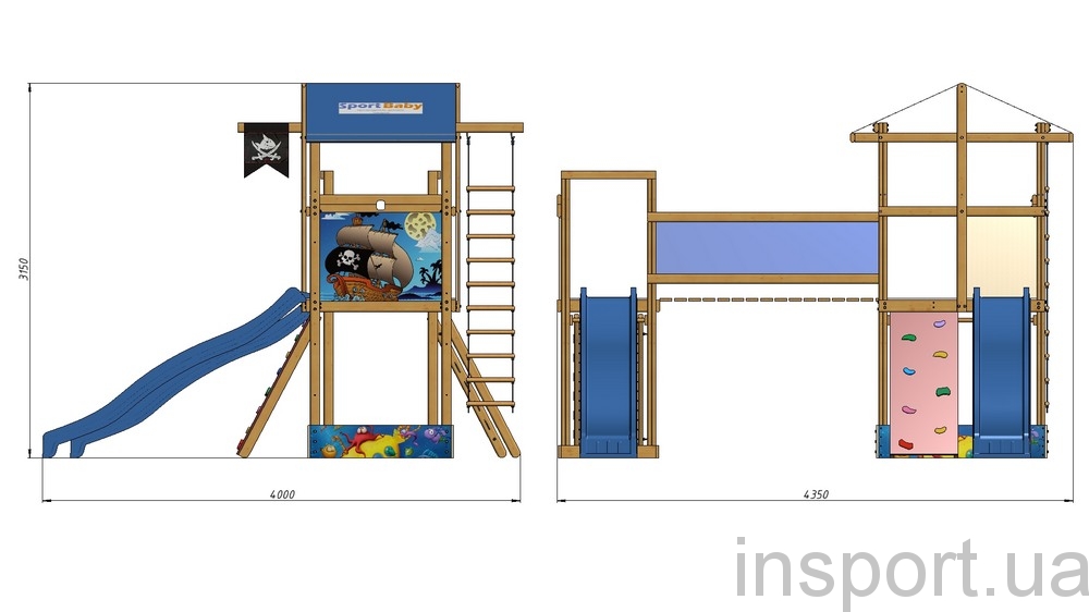 Детская площадка SportBaby-11 - это многофункциональная конструкция предназначена для игр малышей и дошкольников на свежем воздухе. Дети с легкостью найдут себе занятие по душе и часами будут проводить время на детской площадке получая массу положительных впечатлений. Помимо веселого настроения, элементы детской площадки помогут Вашему малышу развиваться физически, укрепить свое здоровье.