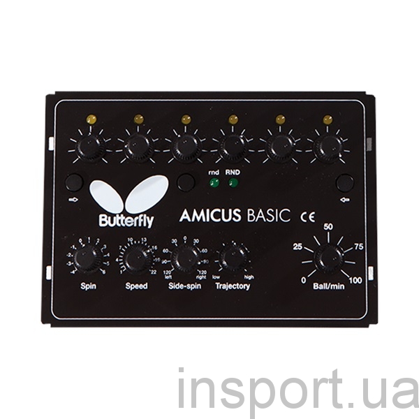 Робот Butterfly Amicus Basic - это система с тремя направляющими моторами и тремя подающими роликами, которая максимально приближает полет мяча к удару живого соперника. Мячи могут выбрасываться с нижним вращением (подрезка), с верхним вращением (накаты, удары), с боковым вращением (топ-спины), а также выполняются свечи и завершающие удары. Мячи не "зажевываются", подаются равномерно с нужной траекторией.