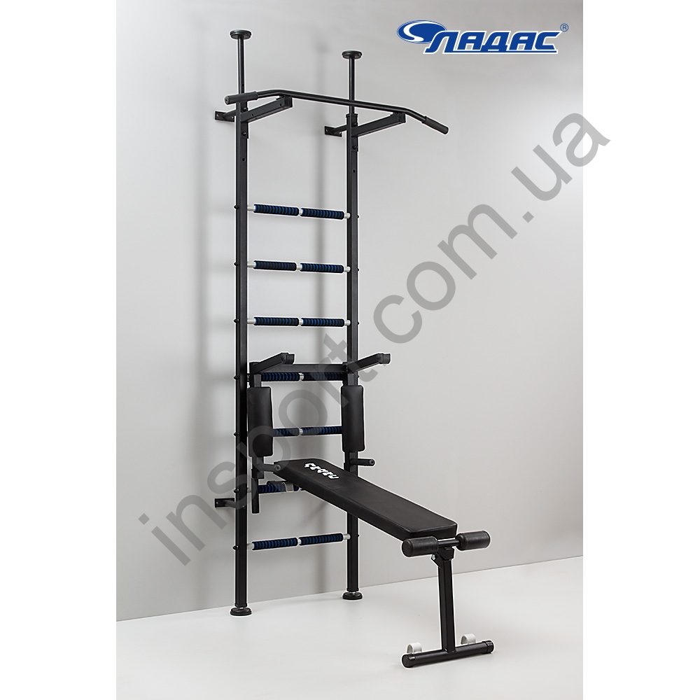 - шведская стенка с металлическими перекладинами с неопреновыми накладками - стойка с жестко закрепленным турником; - навесные брусья с подставкой под штангу для жима; - навесная скамья для пресса, складывающаяся, с валиком для ног; - возможна доукомплектация детским веревочным комплектом; - комплект распорок пол-потолок и 4 кронштейна к стене (без дюбелей/анкеров) |