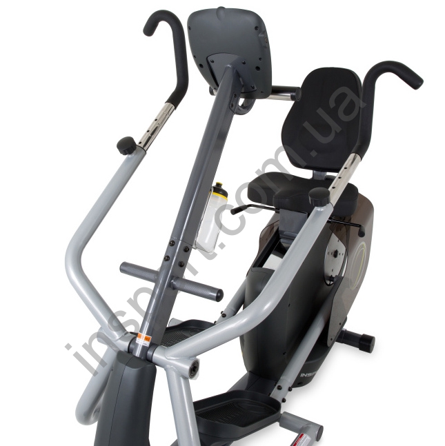кардиострайдер - это горизонтальный степпер с движущими поручнями. Электромагнитная система нагрузки способствует плавной и бесшумной работе тренажера. Удобное сиденье позволяет поддерживать спину пользователя во время тренировки, а полулежащее положение пользователя во время тренировки за счет фиксации тела способствует снижению нагрузки на коленные суставы. Длина шага изменяется от 30 до 38 см. Длина поручней для рук регулируется. Кроме этого поручни имеют разноуровневые рукоятки, поэтому тренировку можно проводить для развития мышц спины, бицепса, трицепса. Следует отметить,что кардиострайдер позволяет проводить тренировку верхней части тела без тренировки ног. Во время такой тренировки в тренажере предусмотрена удобная подставка для ног. Во время тренировки на дисплее с голубой подсветкой отображаются все необходимые параметры. С целью разнообразия и изменения темпа тренировок в велоорбитреке предусмотрено 20 уровней нагрузки, 8 тренировочных программ. Для удобства пользователей также имеется специальный держатель для бутылки с водой.