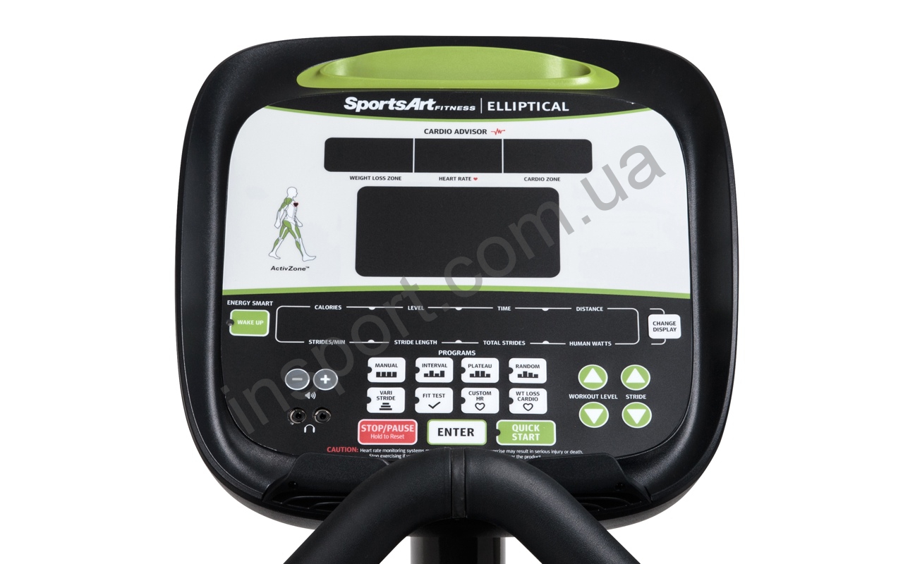 Орбитрек SportsArt E840 - это профессиональный электромагнитный тренажер, в котором гармонично сочетаются эргономичный дизайн, технические характеристики, инновационные системы и технологии. Для достижения максимально эффективного результата тренировок тренажер оснащен специальной технологией CardioAdvizor, которая помогает пользователю регулировать уровень нагрузки для достижения поставленной цели тренировки. Большое количество встроенных тренировочных программ, специальная система амортизации бегового полотна MyFlex и LED дисплей, возможность командной тренировки, благодаря технологии СSAFE, делают занятия спортом приятными и эффективными. Кроме этого, эллиптически тренажер оснащен встроенной функцией ожидания EnergySmart, которая автоматически переходит в спящий режим после нескольких минут простоя, а также снова начинает свою работу, сохраняя все настройки и данные. Также в тренажере имеется еще одна важная функция - электронная регулировка шага широкого диапазона (VariStride).