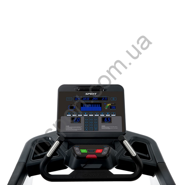 Беговая дорожка Spirit CT900 - относится к топовой коммерческой линии кардиотренажеров Spirit, которую можно использовать в фитнес-клубах, закрытых спортивных залах, гостиницах, предприятиях, а также и в домашних условиях. Беговая дорожка имеет прочные, высококачественные конструкцию комплектующие, характерных именно для премиум класса. 15,6 дюймовый TFT-дисплей высокого разрешения с насыщенным программным обеспечением выводит тренировки на новый, более высокий уровень. Двигатель: надёжный мотор переменного тока с системой управления DY-AC drive и пиковой мощностью мотора 5,0 л.с. имеет защиту от перегрева и встроенную защиту от пиковой перегрузки. Программный модуль последнего поколения имеет 9 тренировочных программ, среди которых: ручной режим, холмы, сжигание жира, кардио-режим, пульсозависимые программы, «5K & 10K» - программа бега на 5 и 10 км, а также тесты на пригодность (протокол Геркина, армия, флот, Военно-воздушные силы, морские пехотинцы, береговая охрана, ФБР). Встроенный body-вентилятор для комфорта тренирующегося; Высококачественная двухсторонняя дека DK Ultimate Deck (производитель D&P, США) толщиной 25 мм с 0,5-миллиметровой феноловой пропиткой, имеет увеличенный ресурс службы; Амортизационная платформа Ultimate Deck SpringTM - стандарт комфорта, надежности и долговечности. Снижена нагрузка на суставы занимающегося на 42% в сравнении с бегом по асфальту; Беговое полотно: коммерческое, многослойное, ортопедическое полотно с размером беговой поверхности 56 х 157 см производства Habasit (Швейцария) - одно из самых прочных и долговечных полотен в мире; Надежные алюминиевые боковые накладки корпуса бегового полотна; Держатели для бутылки с водой, ключей, смартфонов; 3,5-мм разъем для наушников; Компенсаторы неровности пола; Сдвоенные транспортировочные ролики (они же ролики на рычагах изменения наклона полотна) имеют мягкую поверхность качения, для сохранности поверхности пола от повреждений.