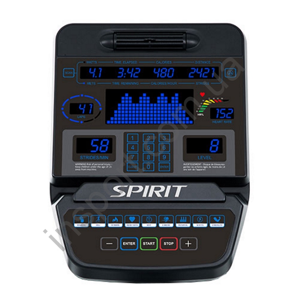 Горизонтальный велотренажер Spirit CR900 относится к топовой коммерческой линии кардиотренажеров Spirit. Велотренажеры предназначены для обслуживания фитнес-клубов, фитнес залов гостиниц, закрытых спортивных залов предприятий и т.п. Тренажер имеет электромагнитную систему нагрузки (не требующий обслуживания бесщеточный генератор) - 40 уровней. Маховик интегрирован с генератором. Тренажер оснащен анатомической спинкой сидения, которое имеет 12 уровней регулировки расстояния до педалей велотренажера. Фиксаторы на педалях, позволяют быстро и легко начать тренировку.