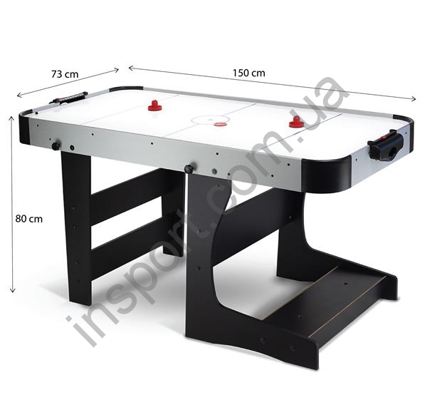 Стол изготовлен из высококачественной плиты MDF, стойкой к истиранию, что приводит к длительному использованию. Игровое поле оснащено специальными воздушными отверстиями, которые облегчают движение диска и дают динамику игры. Под столом была установлена ??эффективная батарея.