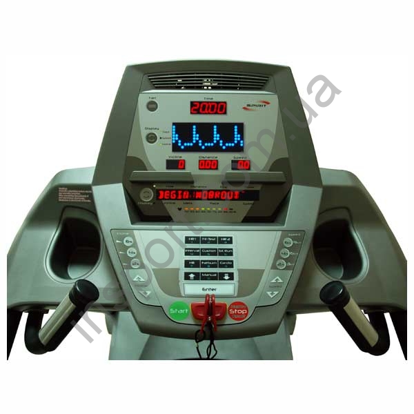 Консоль управления - удобная и интуитивно понятная даже для неопытных пользователей. Дисплей консоли оснащен большим графическим LED дисплеем с приятным голубым цветом свечения светодиодов. Также на консоли расположены 5 цифровых LED дисплеев с янтарным свечением и линейка светодиодных индикаторов порогового пульса (сердечный монитор);