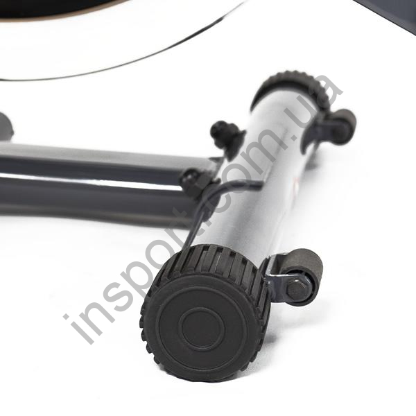 Стальные полозья, оснащенные удобными нескользящими ножками, являются еще одним преимуществом этой конструкции. Транспортные колеса, установленные в передней части, позволяют легко регулировать оборудование. Поручни с регулируемой высотой были покрыты мягкой эргономичной губкой для еще большего комфорта при тренировках.