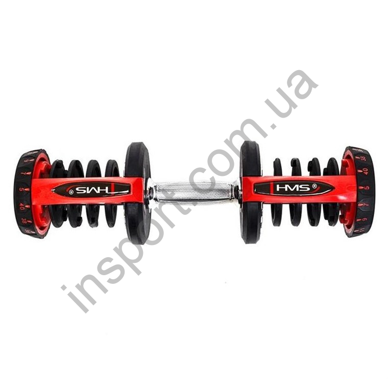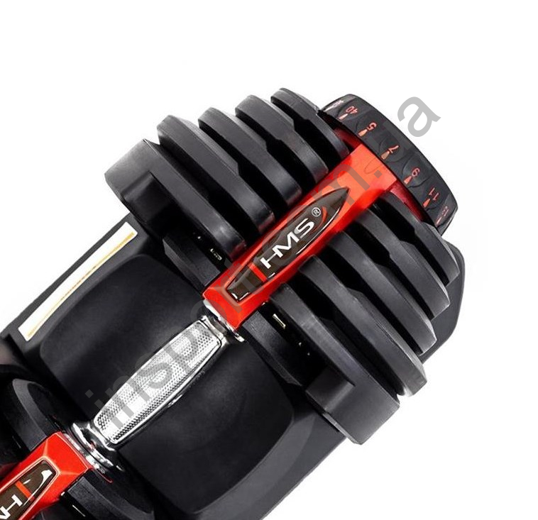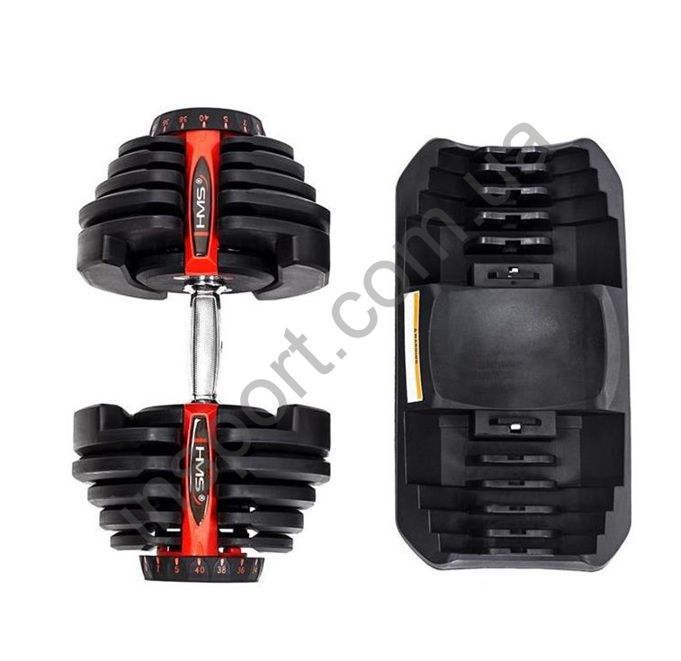 SR80 HMS - регулируемая гантель . В комплект входит горловина, 10 тарелок и подставка. Устройство идеально подходит для людей, занимающихся спортом дома, но оно также хорошо работает в тренажерном зале, заменяя всю стойку традиционными гантелями.