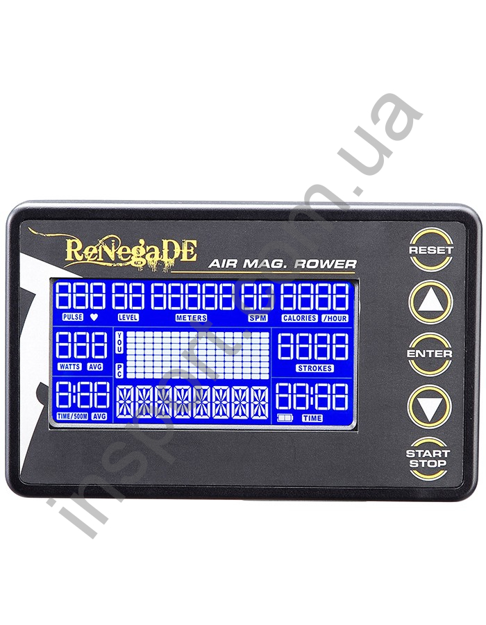 Гребной тренажер ReNegaDE Air разработан и исполнен на базе усиленной конструкции и предназначен для интенсивного использования в спортивных залах, а также для домашнего использования. В тренажере ReNegaDE Air реализованы воздушная и магнитная системы сопротивления, которые позволяют пользователю контролировать интенсивность подаваемой нагрузки, тем самым делая движения более эффективными, ритмичными и эргономичными. Встроенная компьютерная консоль с несколькими программами тренировки отслеживает и отображает все параметры вашей тренировки.