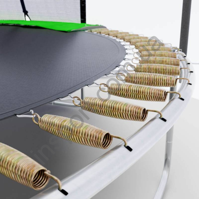 Оцинкованные пружины в батуте Hop-Sport плотно покрыты двухслойным материалом, заполненным губкой, которая в то же время является эффективным защитным слоем от снега, дождя и других погодных условий.