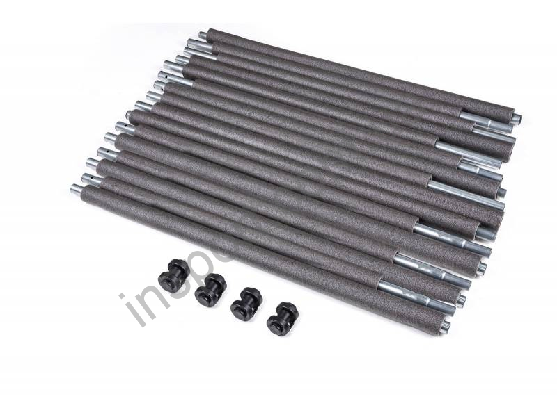 Оцинкованные пружины в батуте Hop-Sport плотно покрыты двухслойным материалом, заполненным губкой, которая в то же время является эффективным защитным слоем от снега, дождя и других погодных условий.