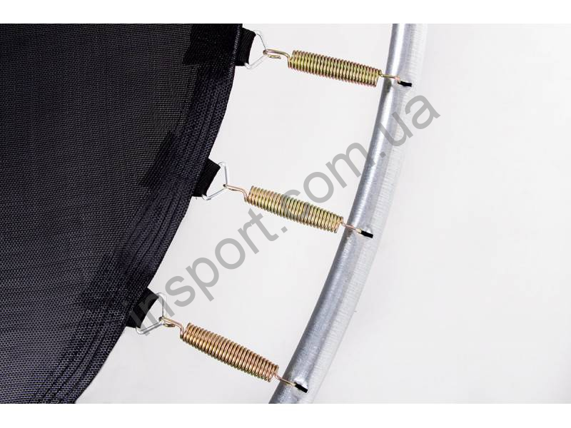 Оцинкованные пружины в батуте Hop-Sport плотно покрыты двухслойным материалом, заполненным губкой, которая в то же время является эффективным защитным слоем от снега, дождя и других погодных условий.