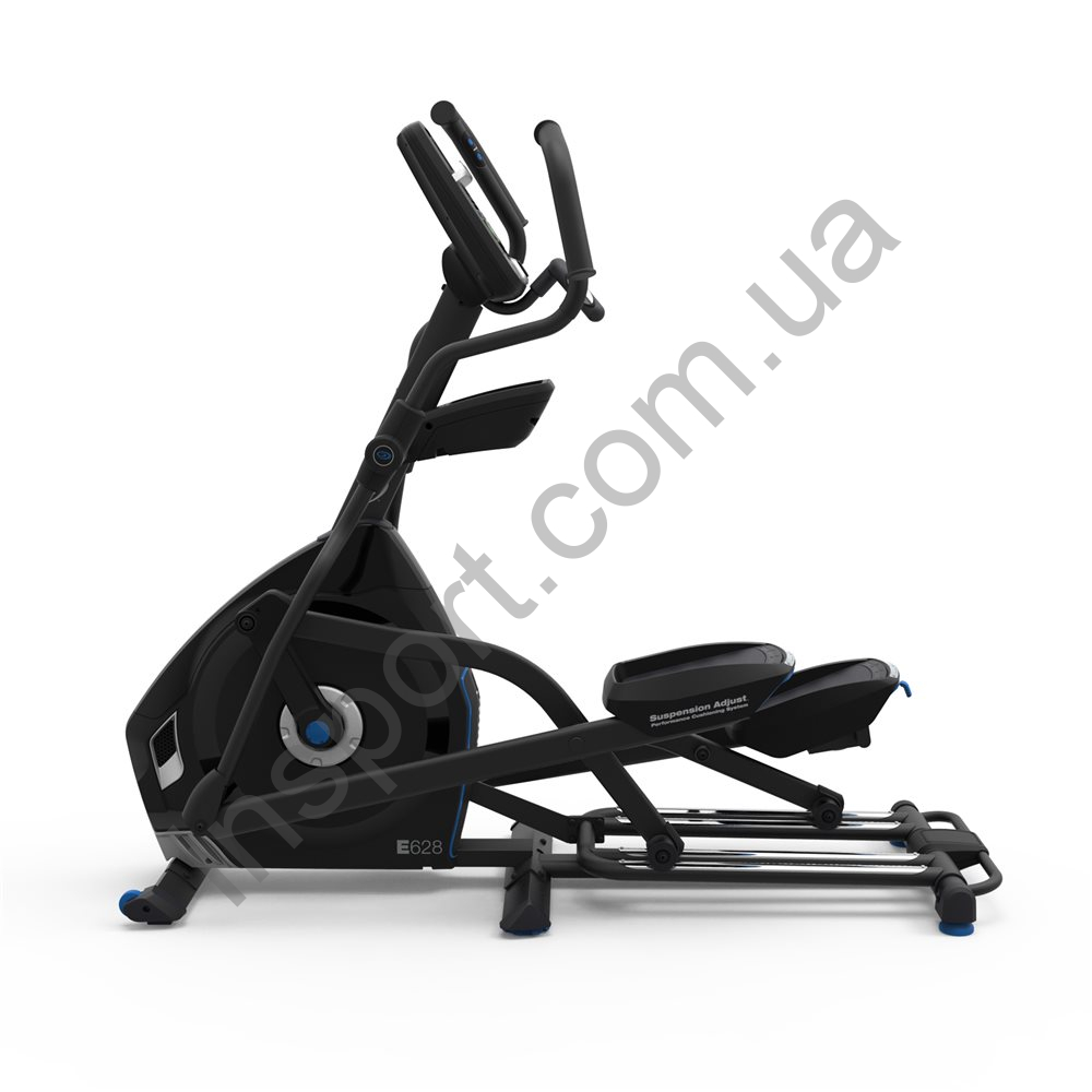 PRECISION PATH ™ STRIDE LENGEN : ДЛИНА ШАГА является одним из наиболее важных параметров, влияющих на комфортную и эффективную тренировку на эллиптическом кросс- тренажере. Программируемый эллиптический кросс-тренажер E628 имеет оптимально выбранную длину шага, чтобы оборудование подходило как для низких, так и для высоких пользователей. Благодаря маховику, расположенному спереди, ступенька плоская, а расстояние между ступнями узкое. Длина шага 56 см .