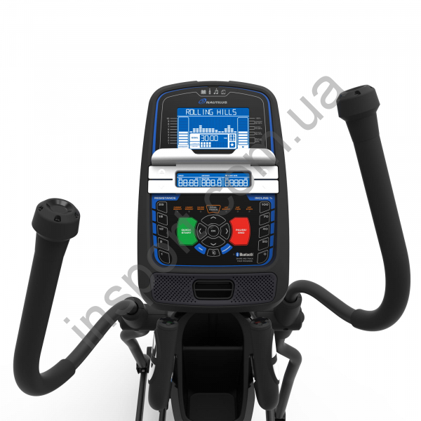 Спроектирован на основах дизайна коммерческой линии эллиптических тренажеров, Е626 оснащается 29 встроенной программой тренировки, 25 уровнями сопротивления, моторизованным изменением угла наклона, встроенными динамиками, возможность подключения медиа устройств. Встроенная технология Bluetooth позволяет легко синхронизироваться с порталом Nautilus Connect™, с приложением Nautilus Trainer™, а также MyFitnessPal. Также, Е626 оснащен дисплеем Dual Track™ для наиболее удобного отслеживания текущих результатов.