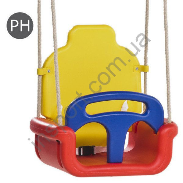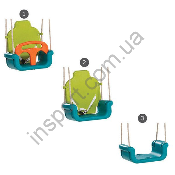 Качели имеет съемный защитный барьер спереди и съемную спину для ребенка, то есть качели могут по мере роста ребенка изменять свой внешний вид!