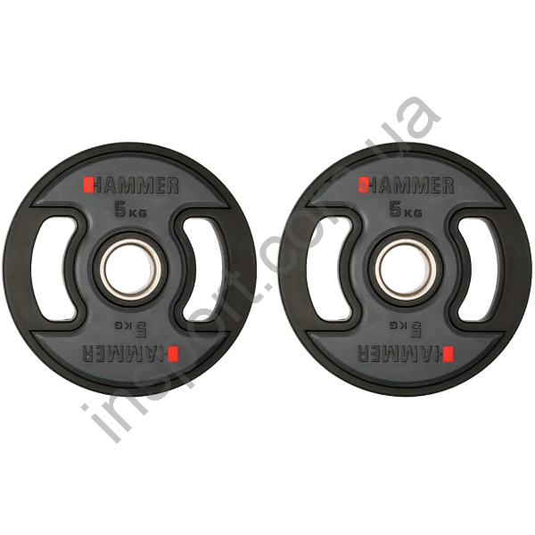 Олимпийские диски профессиональные Hammer PU Weight Discs 2*5 kg 4707 с полиуретановым покрытием и удобными вырезами для рук.